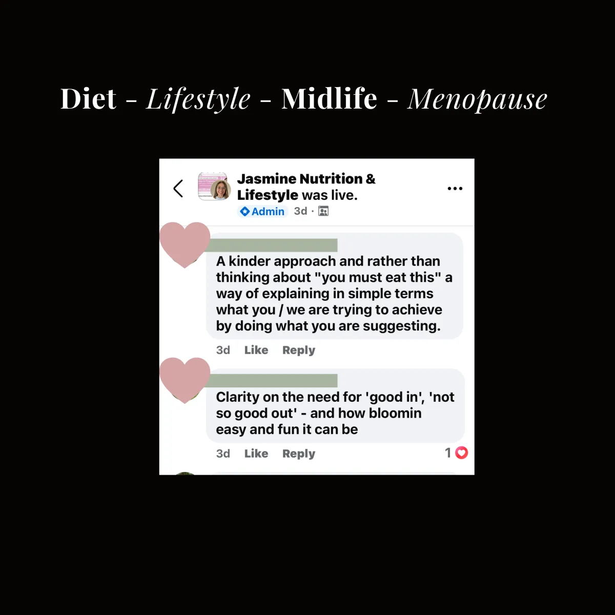 A month to month membership with a yearly payment option where you get access to nutrition lessons, step by step guidance, group and 1-1 support with Jasmine, Nutrition & Lifestyle Coach certified in Menopause Weight Loss and SO much more!